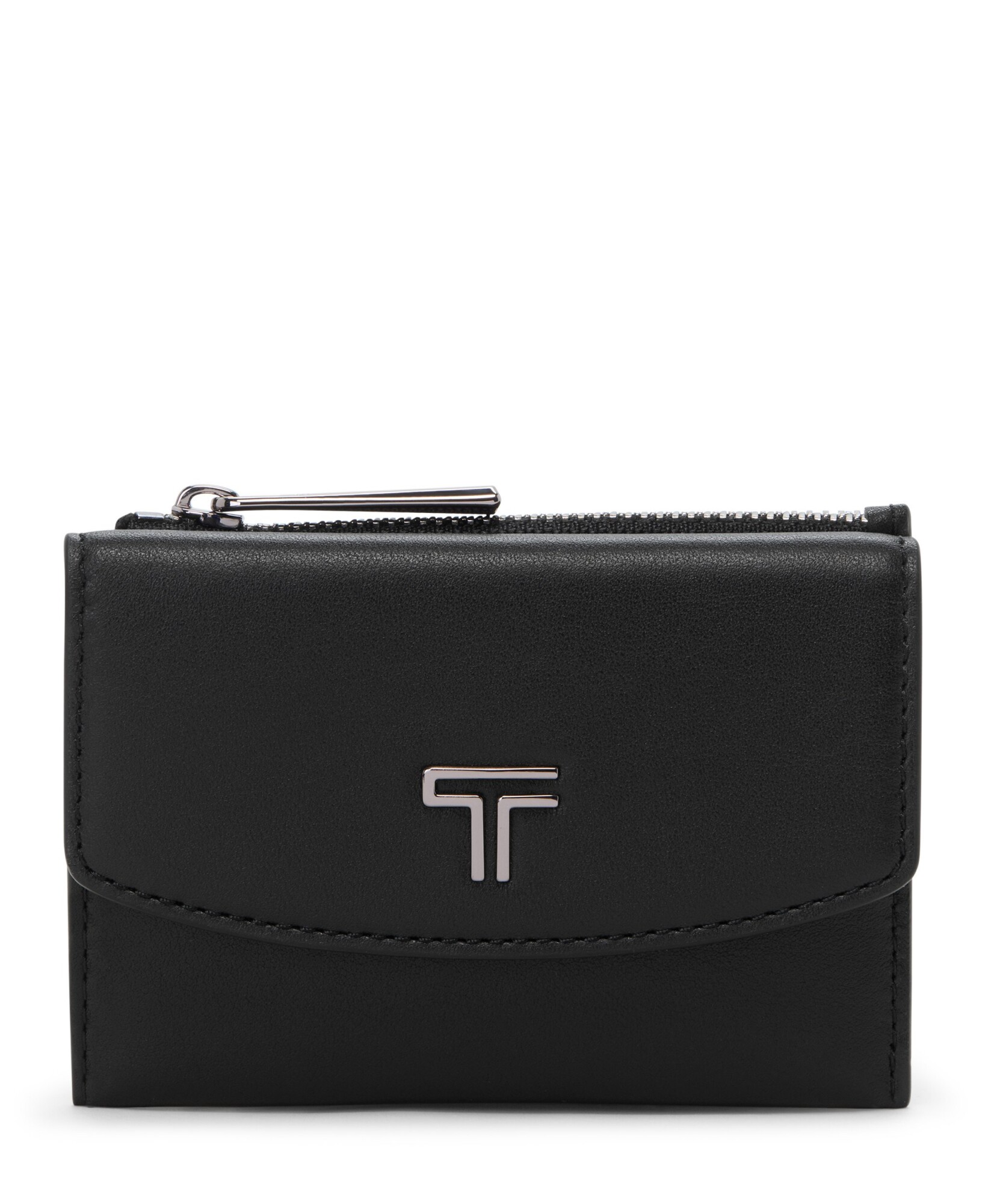 Guarde em segurança os seus cartões essenciais com espaço extra para moedas. Este porta-cartões apresenta um logótipo em T marcante e cabe facilmente em bolsas pequenas.