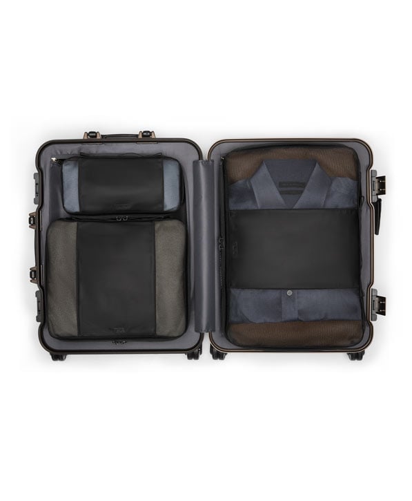 Impressionante em todos os ângulos, esta mala de bordo ostenta uma silhueta moderna com contornos icónicos e fluidos. A estrutura durável em alumínio foi concebida para cumprir as directrizes da maioria das companhias aéreas nacionais para bagagem de mão.