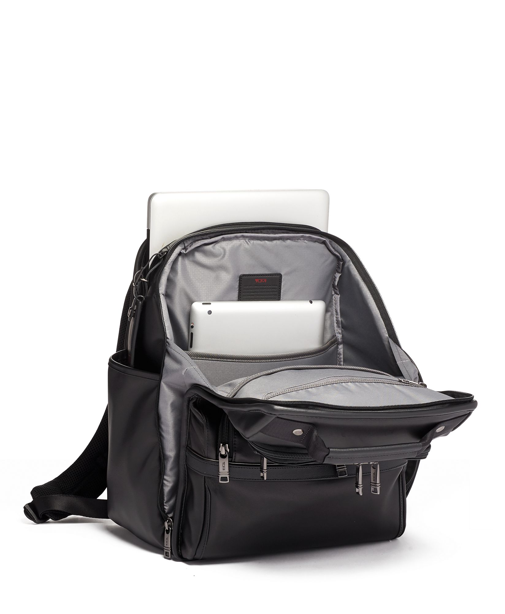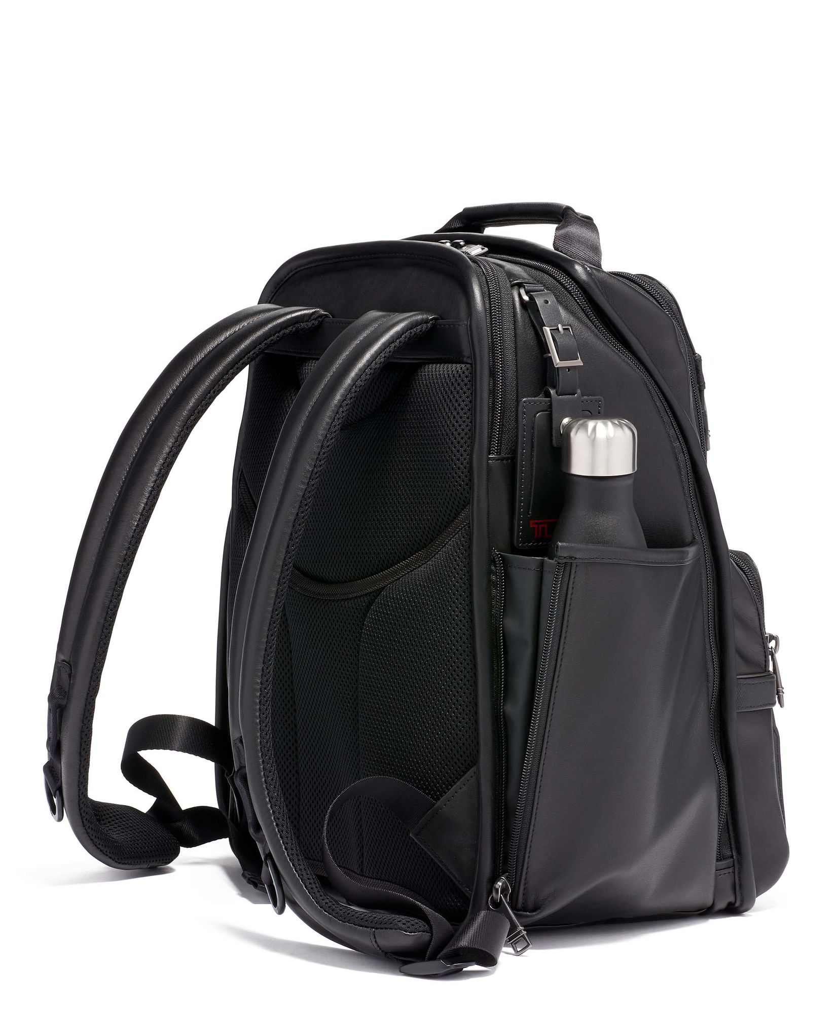Ideal para viagens de lazer, de negócios e estudantes. Esta mochila em pele tem excelentes características de organização, sem ser volumosa. O compartimento principal inclui uma secção acolchoada para o portátil, um bolso acolchoado para tablet, um arquivo removível para documentos, bem como bolsos para acessórios. O exterior oferece vários bolsos, incluindo um resistente à água para uma garrafa ou guarda-chuva.