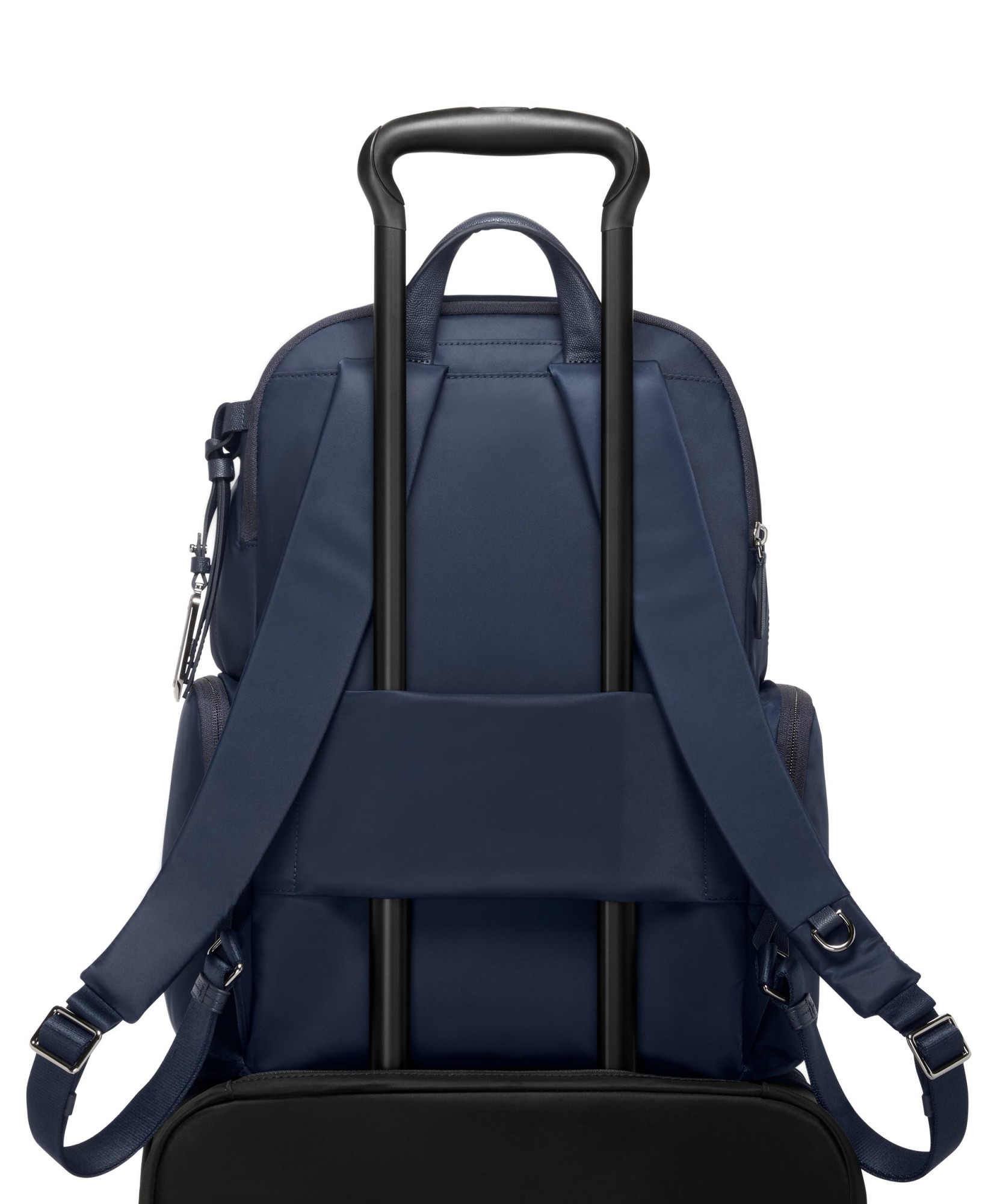 Alças de ombro com argola metálica em formato D e presilhas compatíveis com acessórios TUMI selecionados;